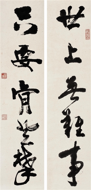 高二适《世上只要五言联》 97×24cm×2 南京求雨山文化名人纪念馆(高二适馆)藏