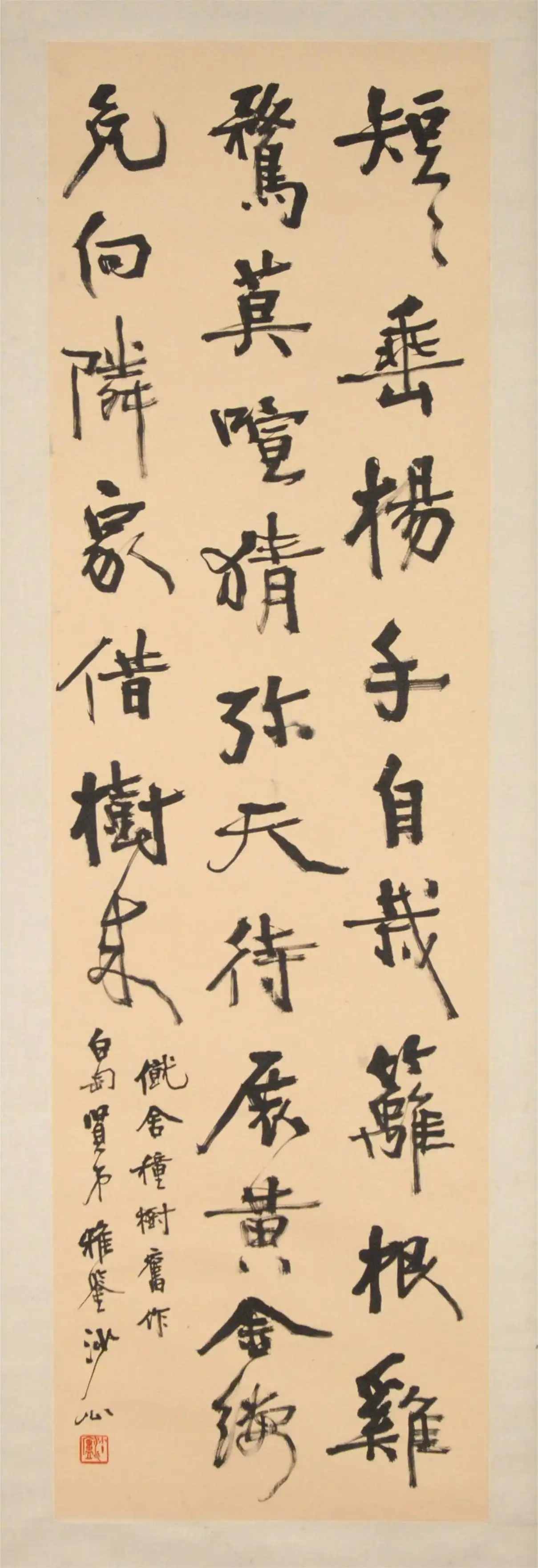 胡小石是我国著名的学者、书法家、教育家,以古文字学、书法、楚辞、中国文学史见长。深厚的学术素养为他的书法艺术带来非常高雅的书卷气。胡小石的书法糅合契篆、简牍、碑帖精华,涩笔顿挫进行创作,使他的书法艺术有着非常难得的金石气息,深得古朴搜劲、清峻横逸的艺术风神。在书法审美观念中,胡小石首先认为书法创作是自我精神情感、思想的抽象表现。书法是反映个人人品、才性、情感和审美境界的艺术,只有具备非常渊博的学识素养、广阔的人文背景、深邃丰富的思想情感,才能有丰富的审美意象和个性特色的书法艺术的出现,这是胡小石书法创作最为重要的出发点和观念依托。