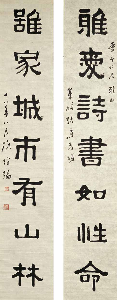 隶书七言联 1929年作 146X27cm 澳门博物馆藏
