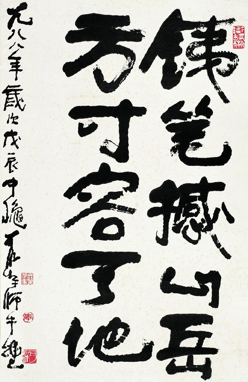 款识:一九八八年岁次戊辰中秋,可染于师牛堂。