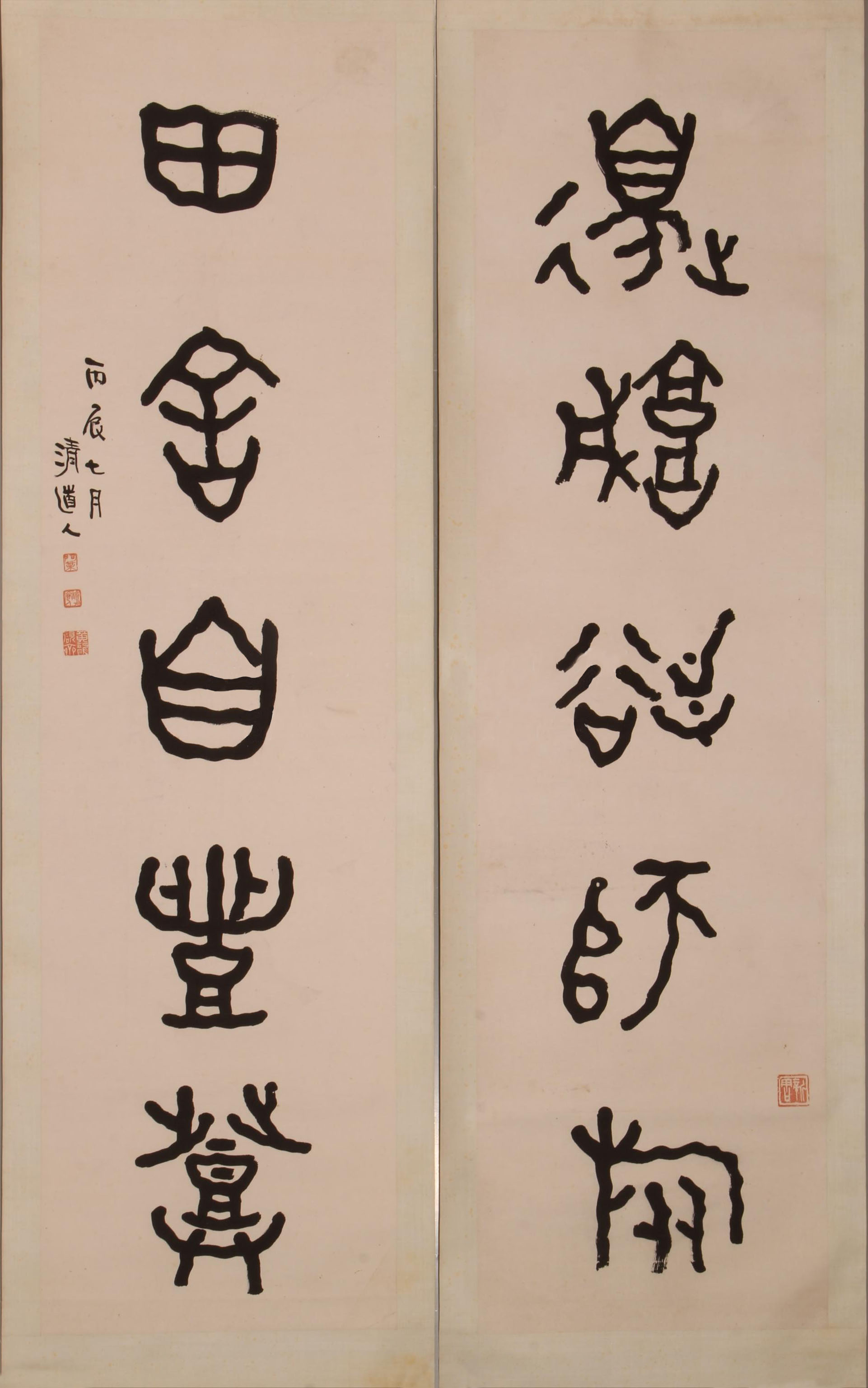 李瑞清《集散氏盘五言联》1916年 绍兴博物馆藏