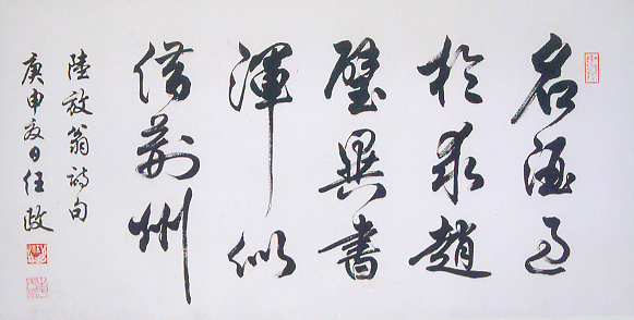 任政行书陆游诗句