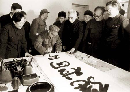 1982年,舒同出席黑龙江书法展时即席挥毫