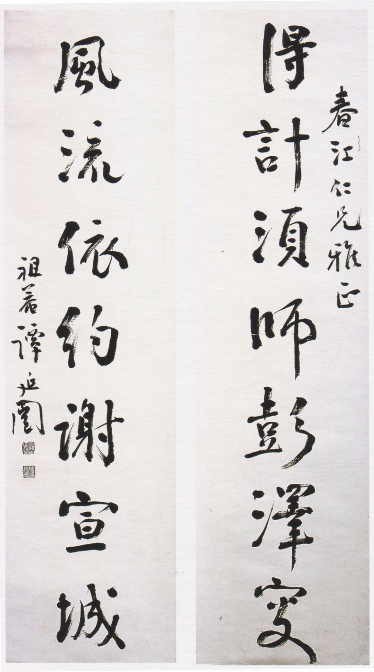 谭延闿《行书得计风流七言联》纸本行书 147x49cm×2 浙江省余杭博物院藏