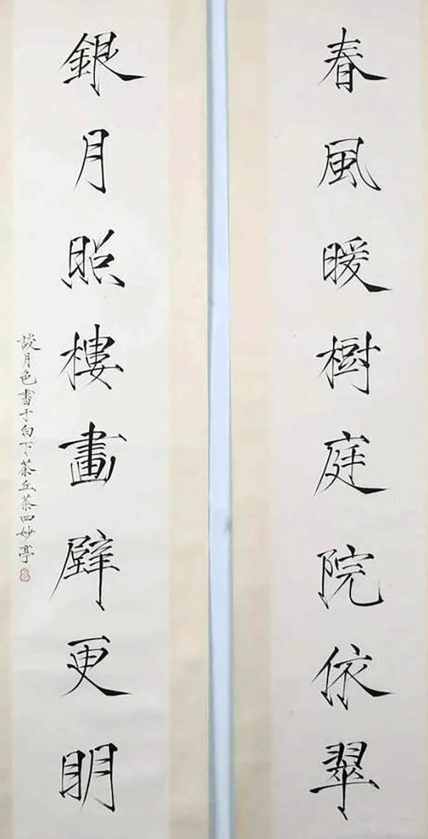 谈月色《春风银月八言联》楷书