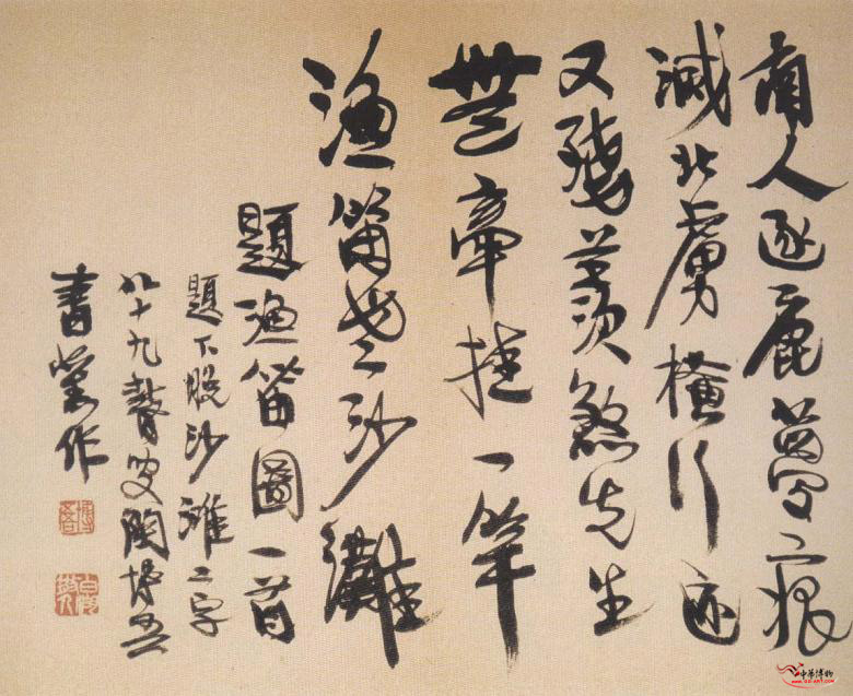 行书题沙滩渔笛图诗 纵30厘米,横40厘米。
