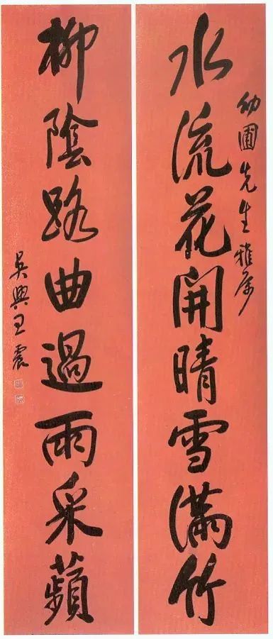 释文:水流花开,晴雪满竹;柳阴路曲,过雨采苹。