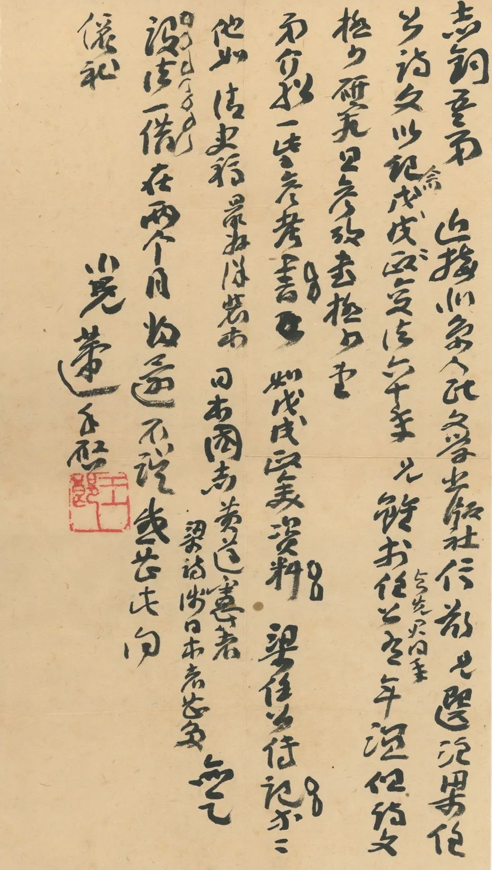 释文:志钧吾弟: 近接北京人民文学出版社信,欲兄选注梁任与先君同年。公诗文 [1],以纪念戊戌变法六十年,兄虽於任公有谊,但诗文极少研究,且参考书极少,望弟介绍一些参考书,如戊戌政变资料、梁任公传记等等,他如《清史稿》、最好洋装本。《日本国志》,黄遵宪著。亦乞梁诗涉日本者甚多。设法一借,在两个月归还不误,感甚。此问儷祉 小兄蘧手启