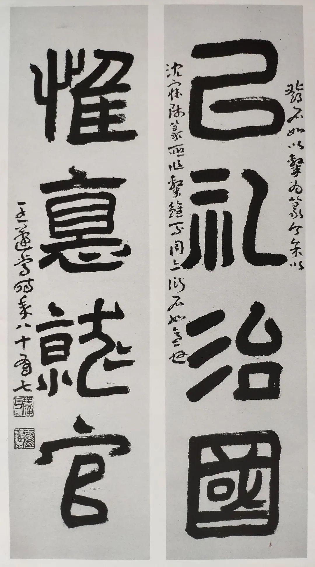 邓石如以隶为篆今余以沈寐师篆联作隶,虽不同亦衍石如意也。王蘧常时年八十有七