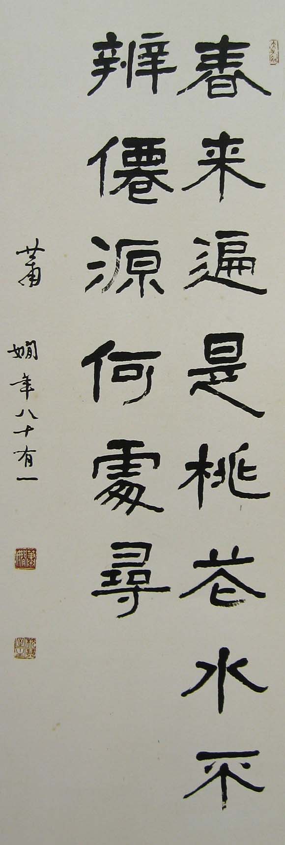 萧娴《隶书王维诗句轴》 95×34cm 1982年