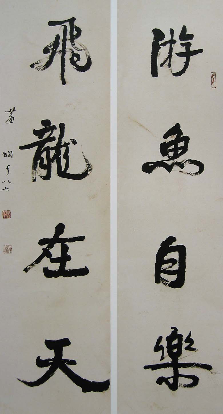 萧娴《游鱼飞龙四言联》 170×45cm×2 1988年 南京求雨山文化名人纪念馆(萧娴馆) 藏
