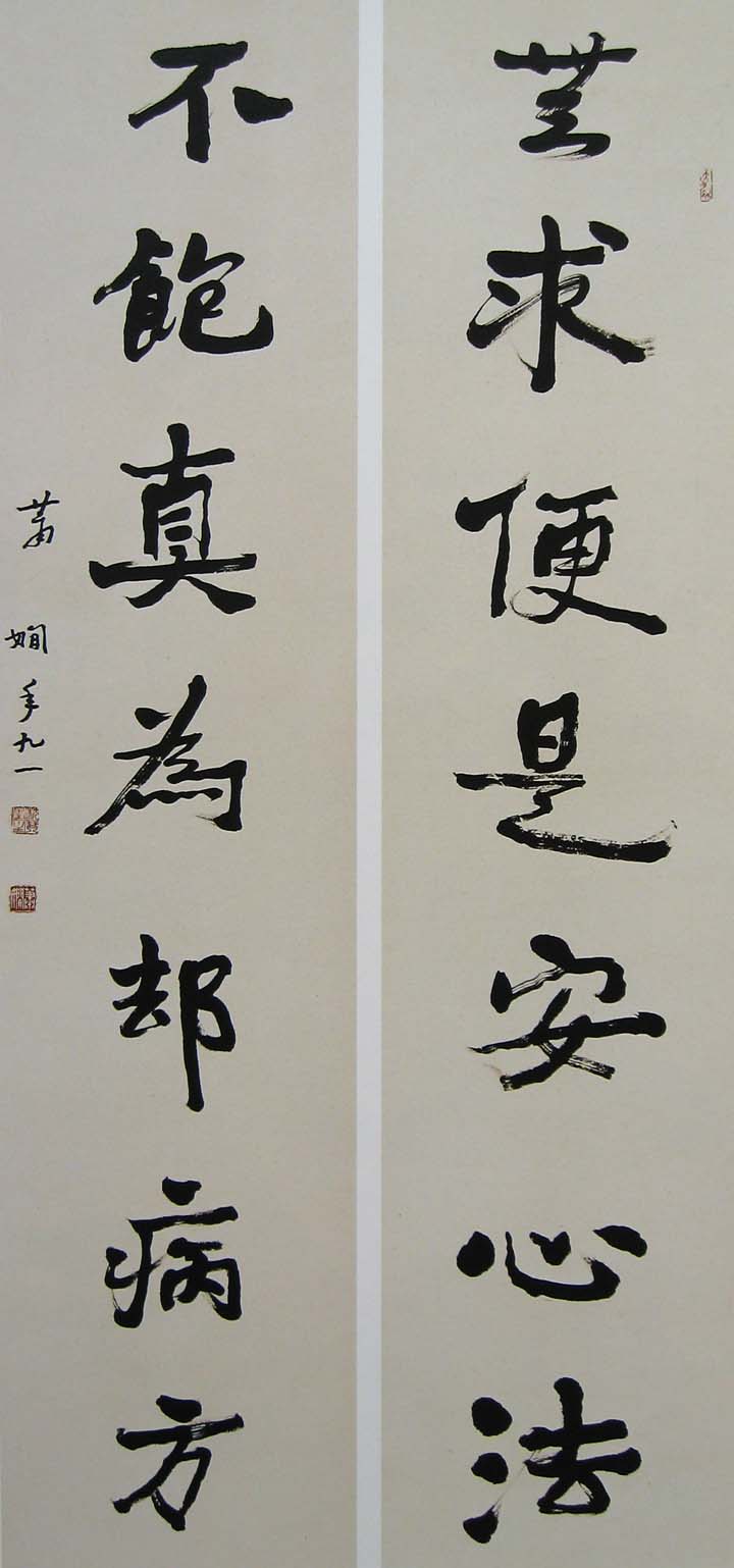 萧娴《无求不饱七言联》 135×33cm×2 1992年