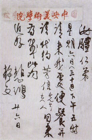 徐悲鸿《手札》 28cm×22cm 宜兴徐悲鸿纪念馆藏