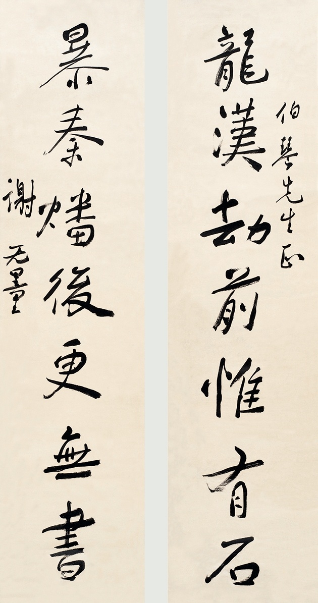谢无量《行书龙汉暴秦七言联》