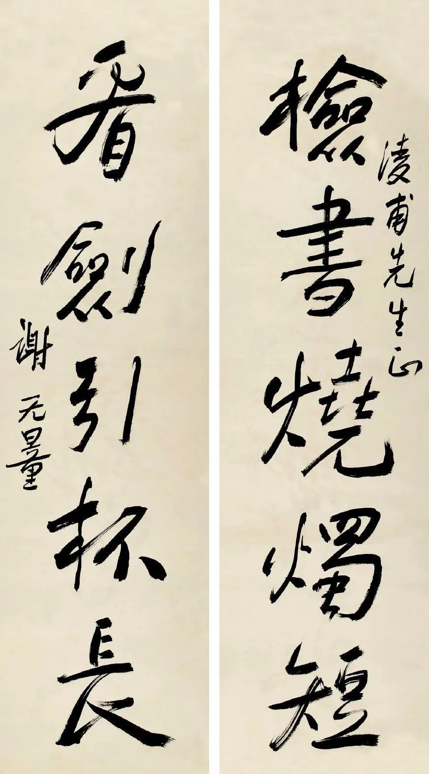 释文: 检书烧烛短;看剑引杯长。 款识:凌甫先生正。谢无量。