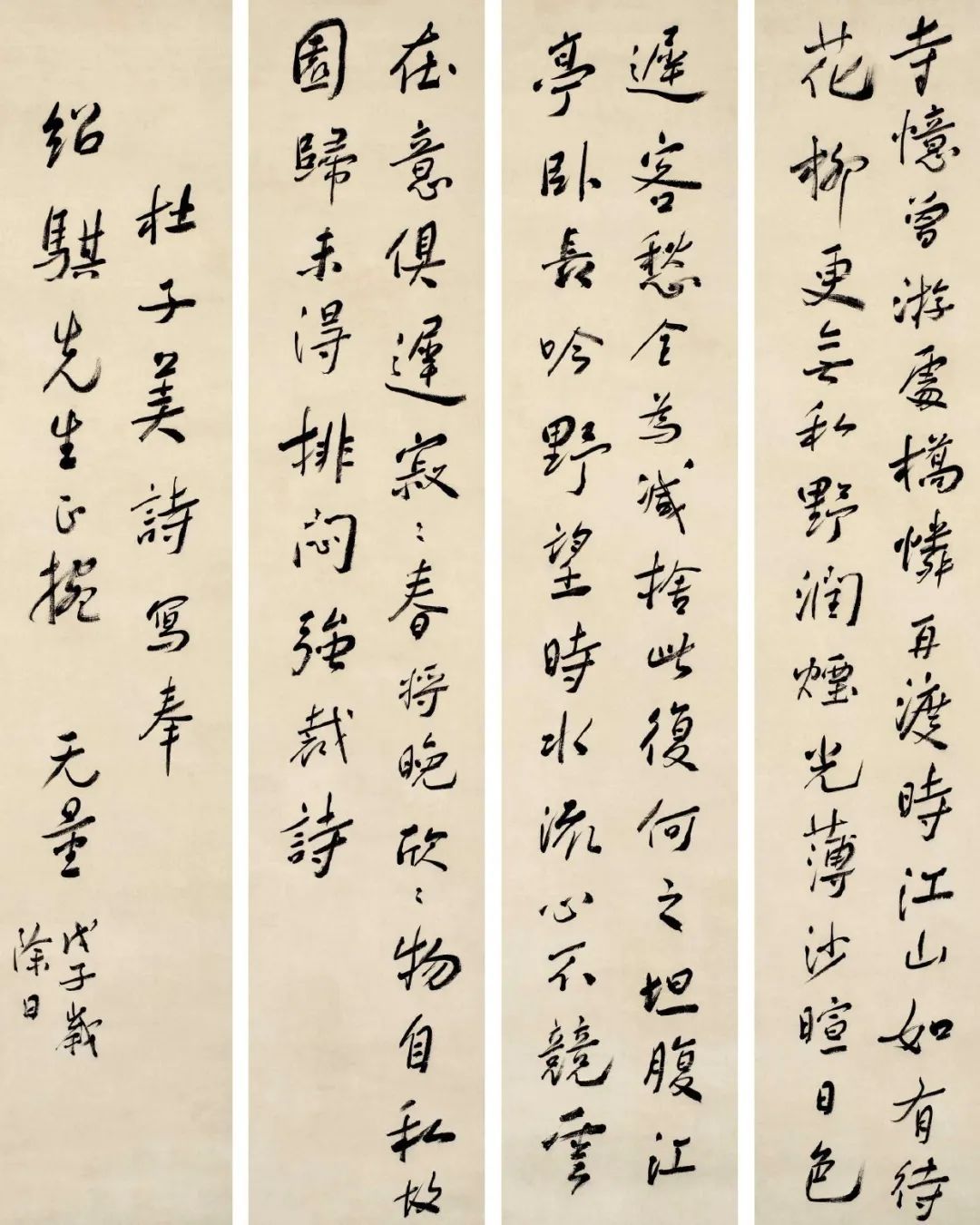 谢无量《行书杜诗二首四条屏》 1949年作