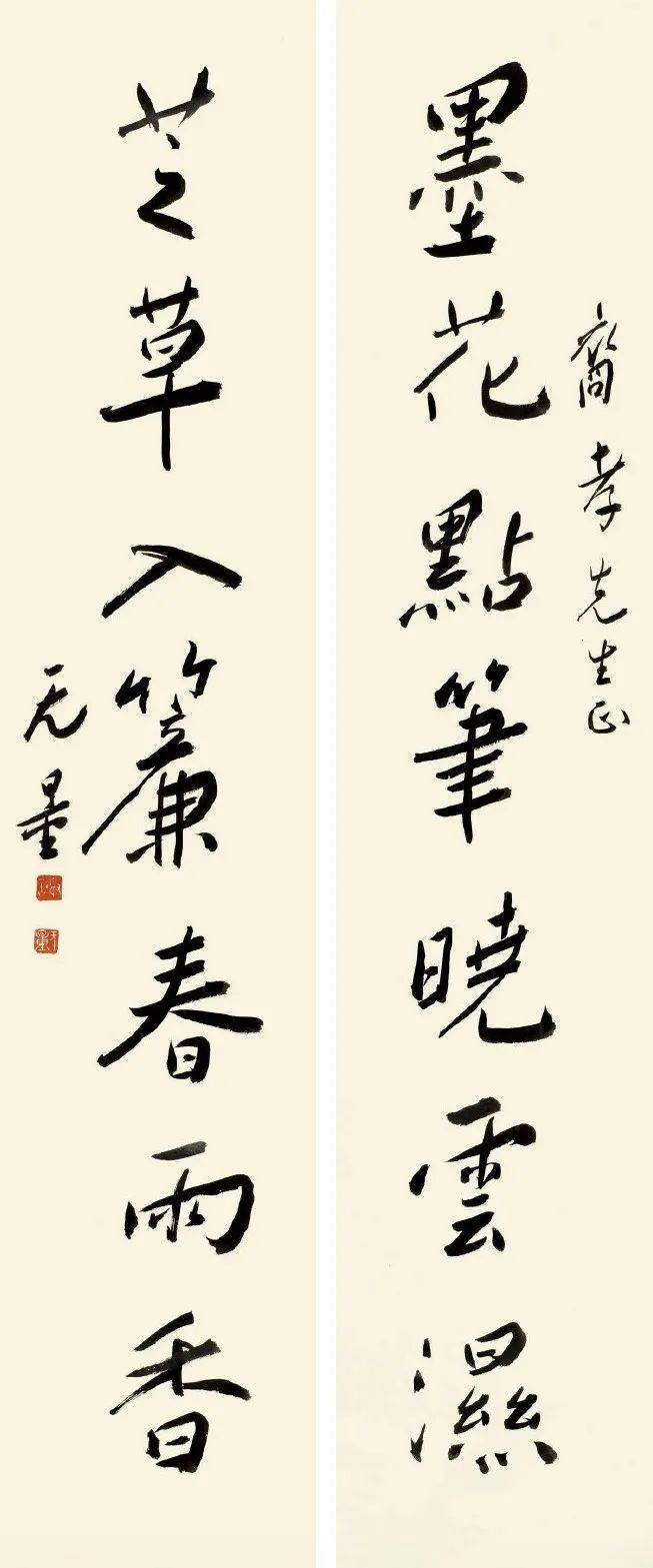 释文: 墨花点笔晓云湿;芝草入帘春雨香。 款识:裔孝先生正。无量。