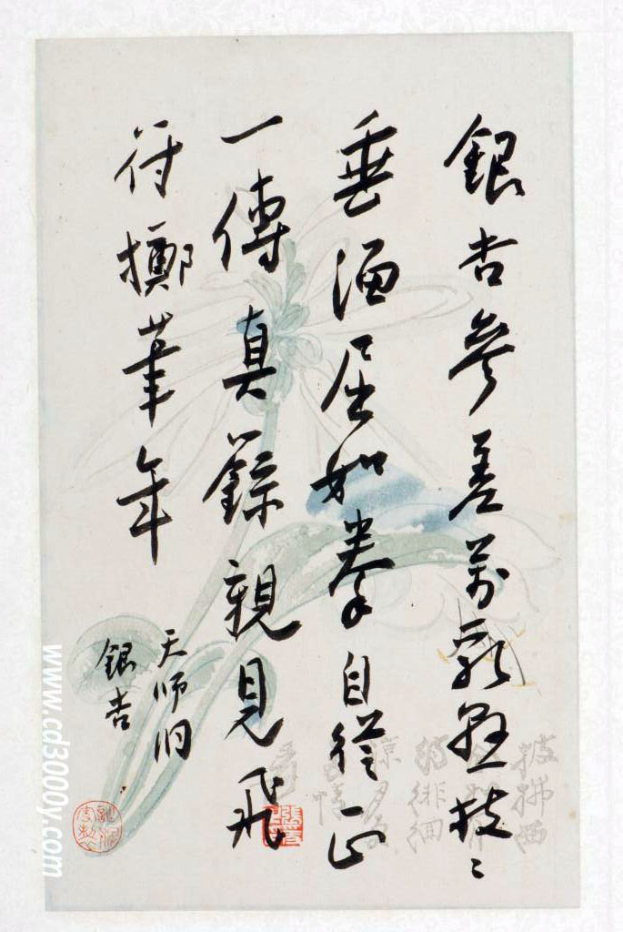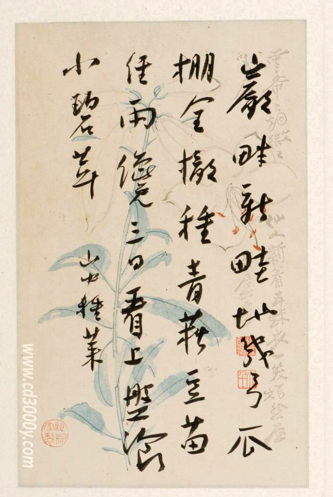 释文:闻携书卷下杭州,二月春风百草头。我亦江南未归客,云端空望李膺舟。