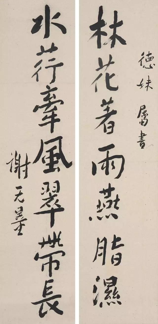 释文:林花著雨燕脂湿,水荇牵风翠带长。 款识:德妹属书,谢无量。