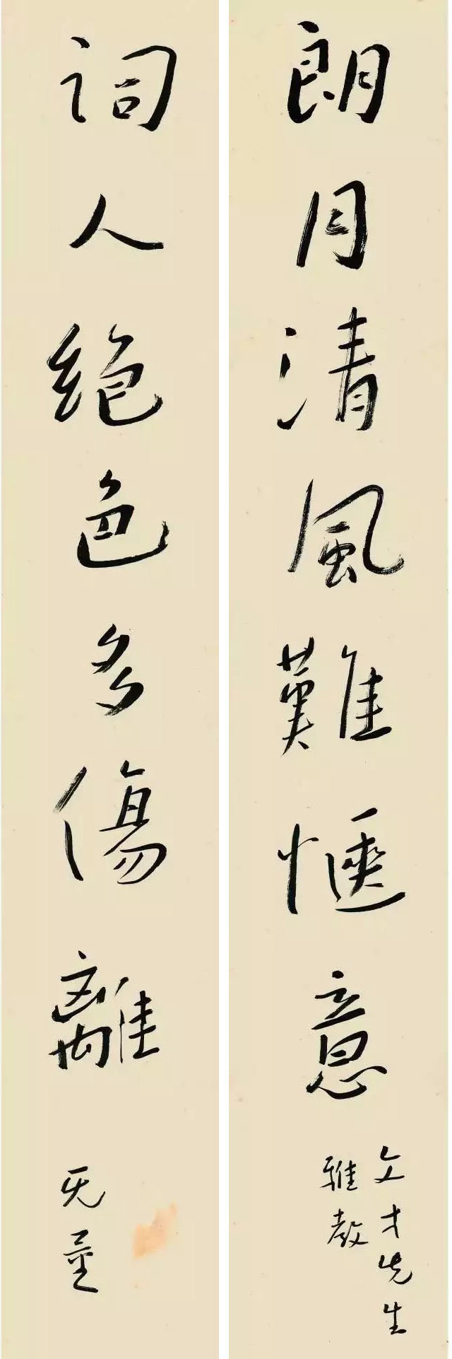 释文:朗月清风难惬意;词人绝色多伤离。 款识:文才先生雅教,无量。
