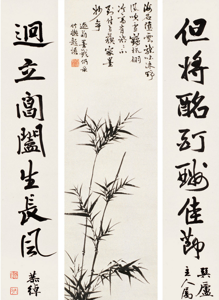 叶恭绰《墨竹中堂 行书七言联立轴》