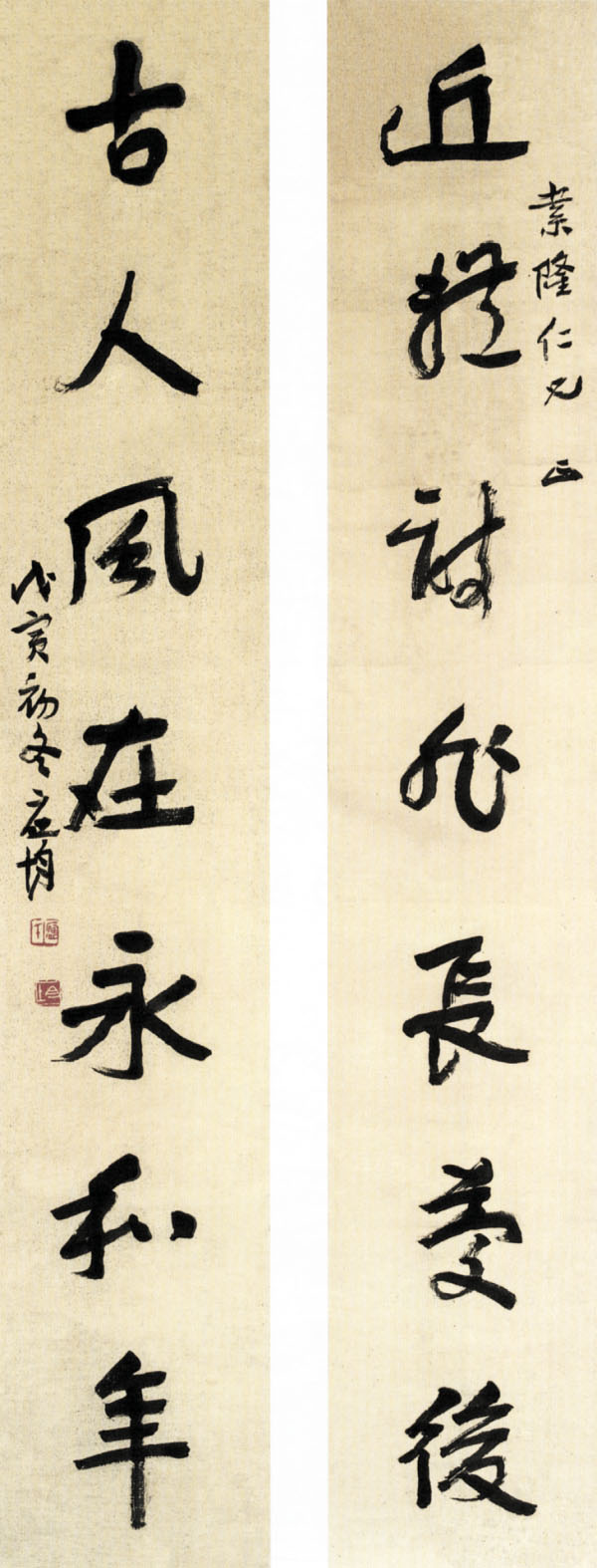 应均《行书近体古人七言联》纸本行书 1938年 浙江永康万泰美术馆