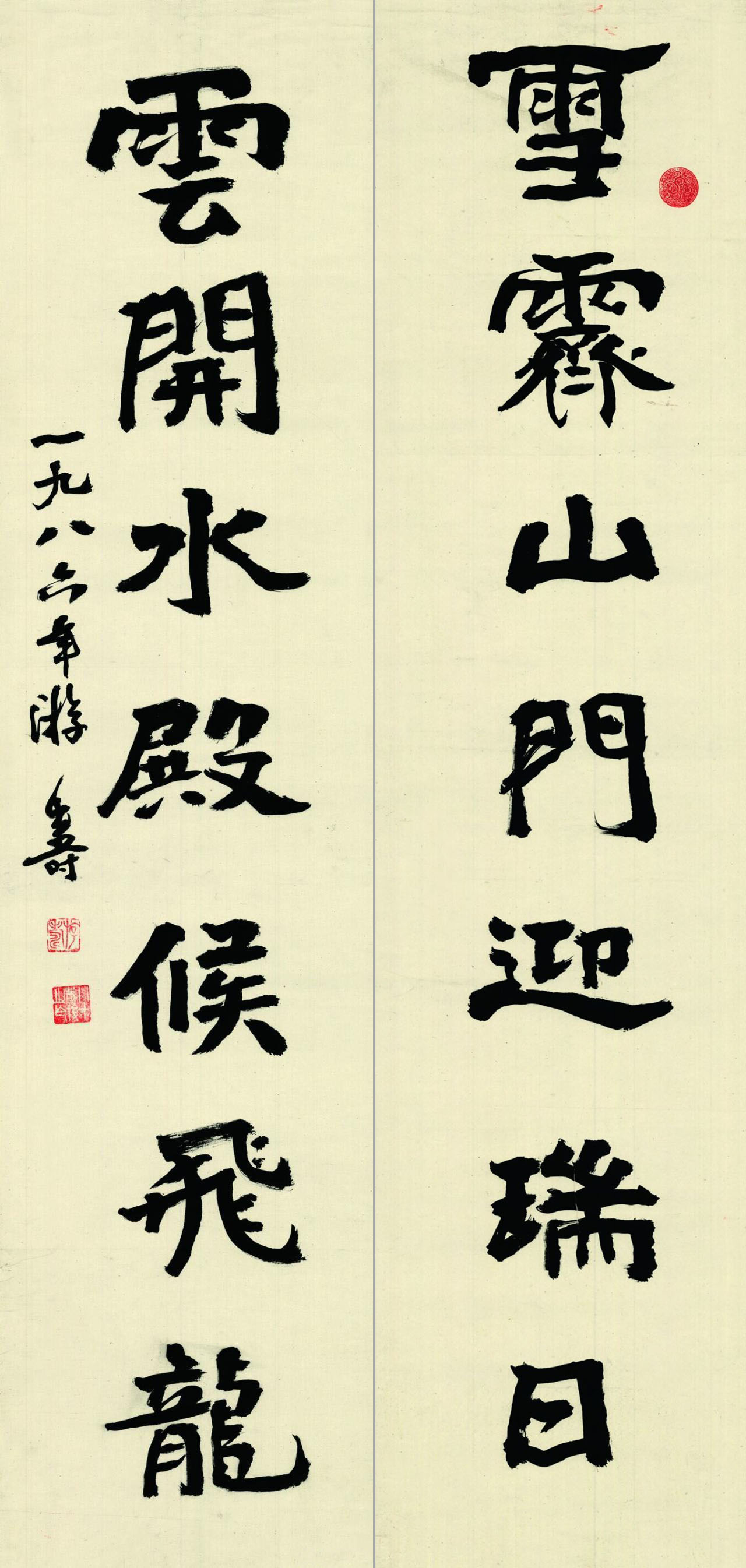 游寿 《书钱起诗联》 1986年