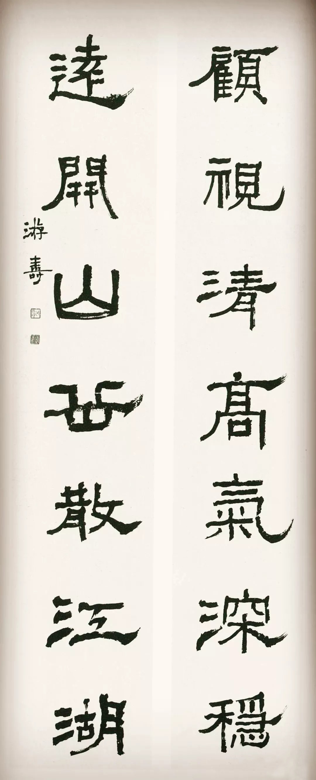 游寿《隶书集杜甫诗句七言联》 1960年代