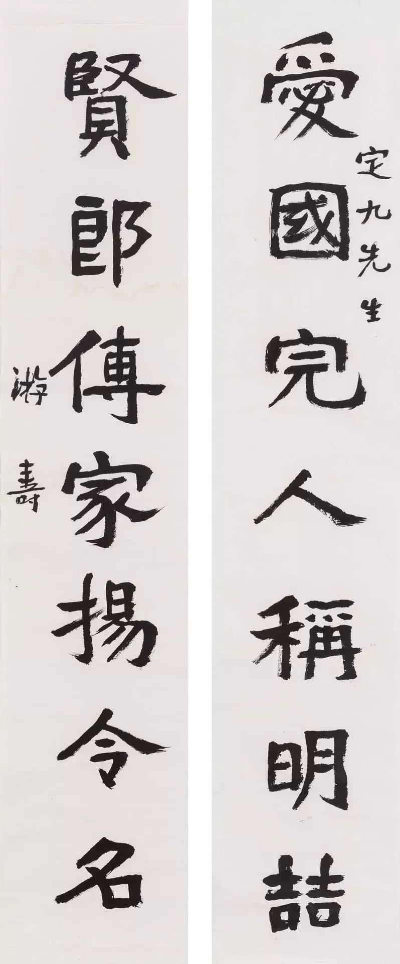 游寿《爱国贤郎七言联》纸本镜心 130×26.5cm×2