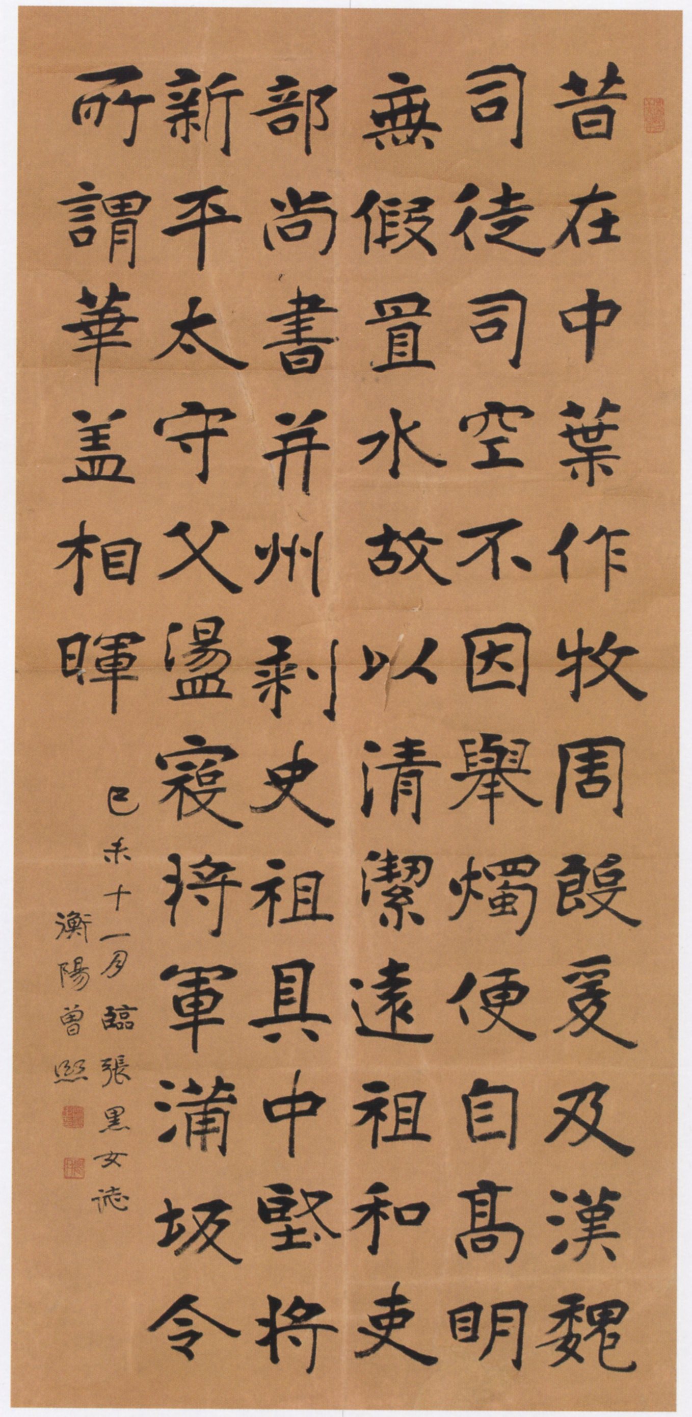 曾熙《临张黑女墓志轴》纸本楷书 176.5×82cm 1919年作 常州博物馆藏(1959年刘国钧先生捐) 释文:略 款识:已未十一月临张黑女。衡阳曾熙。 钤印: