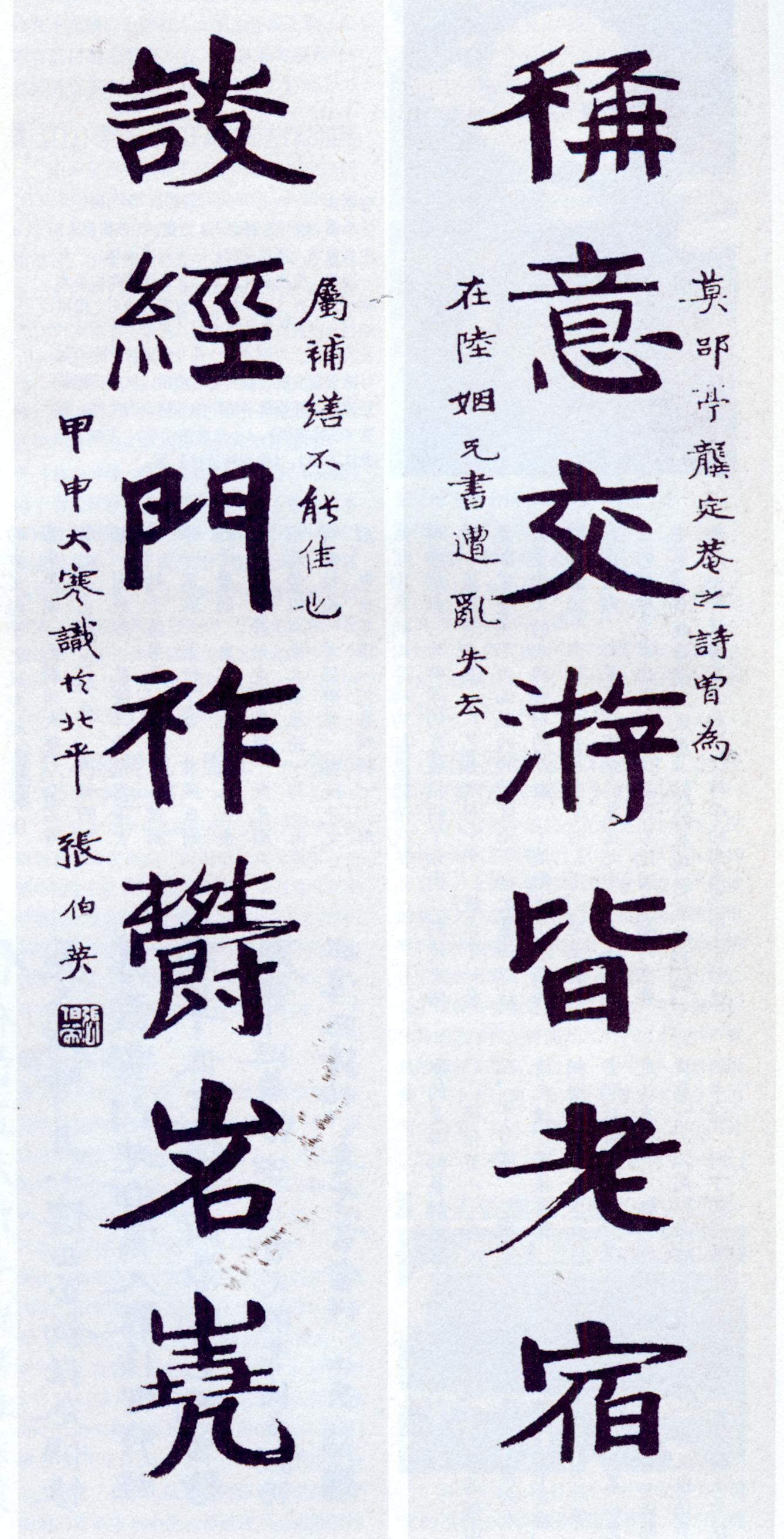 张伯英《楷书“称意谈经”七言联》 刊于《书法》2011年第7期