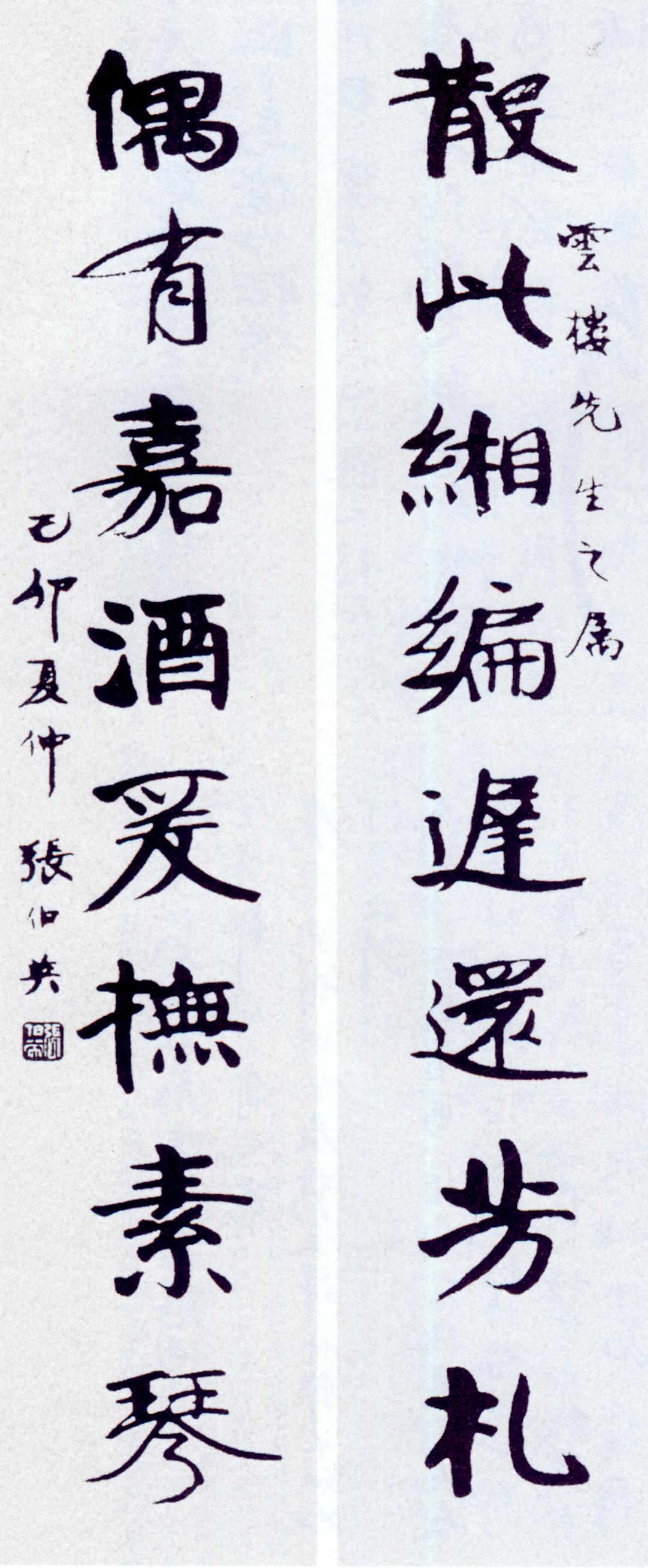 张伯英《行楷“散此偶有”八言联》 刊于《书法》2011年第7期