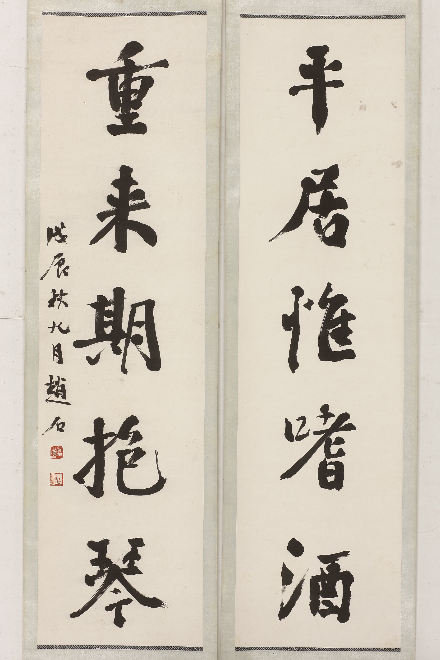 释文:平居惟嗜酒,重来期抱琴。 款识:戊辰秋九月,赵石。 钤印:赵石之印(白文)、古泥(朱文) 【资料来源】无锡博物院网站