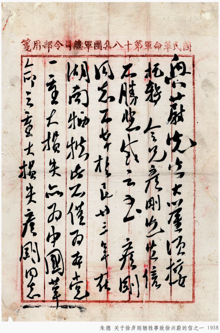 朱德 《关于徐彦刚牺牲事致徐兴蔚的信 》 一九三八年六月二十九日