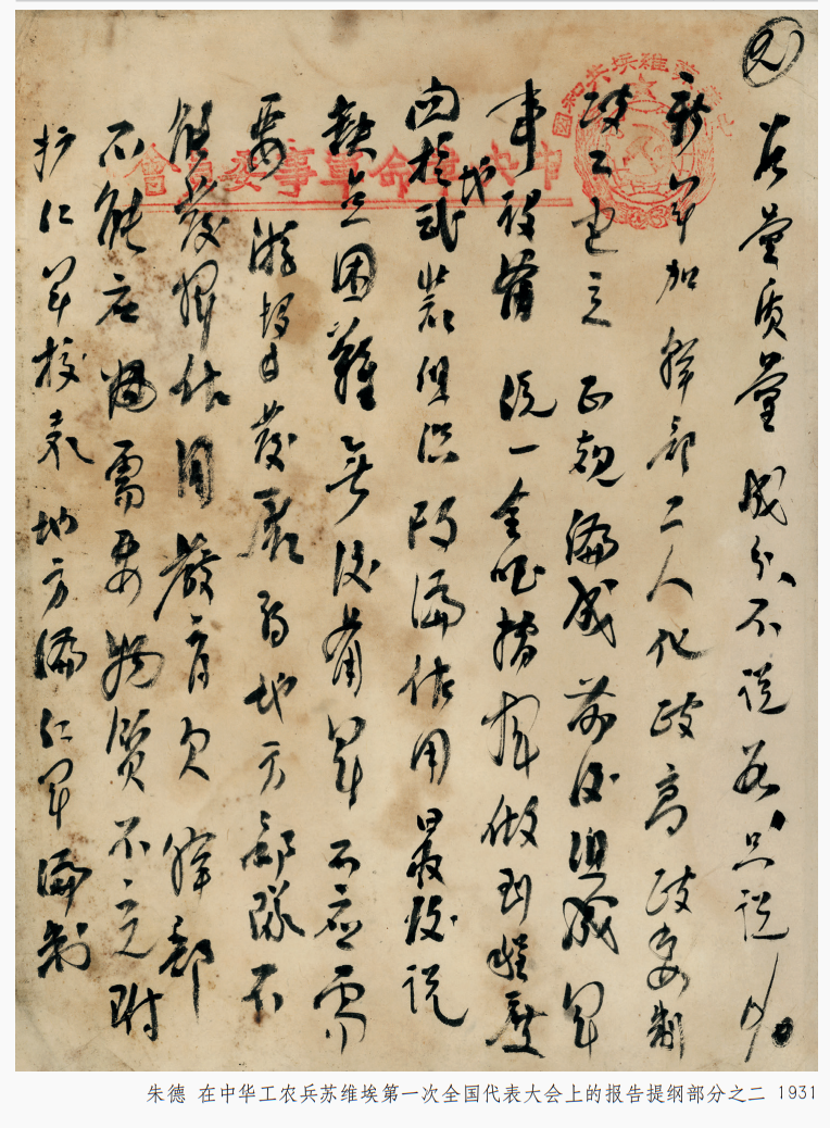 朱德 《在中华工农兵苏维埃第一次全国代表大会上的报告提纲 》一九三一年十一月十一日