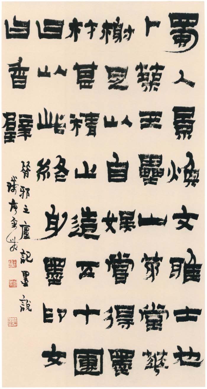 金农《隶书景焕传立轴》 纸本隶书 84.9×44.7cm 扬州博物馆藏 释文:蜀人景焕,文雅士也。卜筑王垒山,茅堂华榭,足以自娱。尝得墨材甚精,止造五十团,曰以此终身。墨印文曰“香璧”。 款署:昔邪之卢记墨说,杭郡金农。 钤印:金农印信(朱文)、冬心先生(白文)、己卯以来所作(朱文)