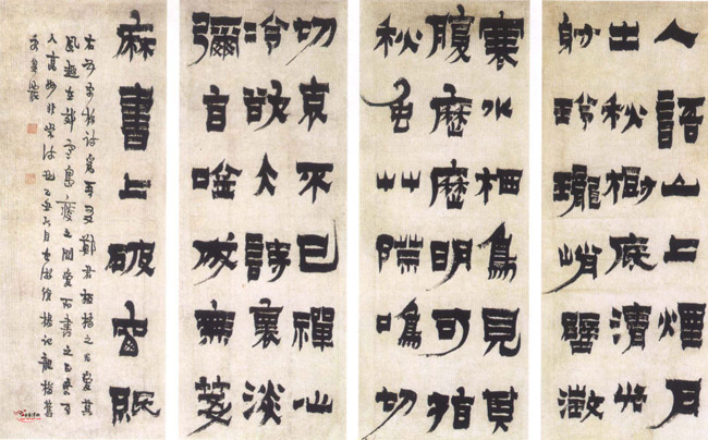 隶书四条屏 纵85厘米、横32厘米。 图片中华博物网