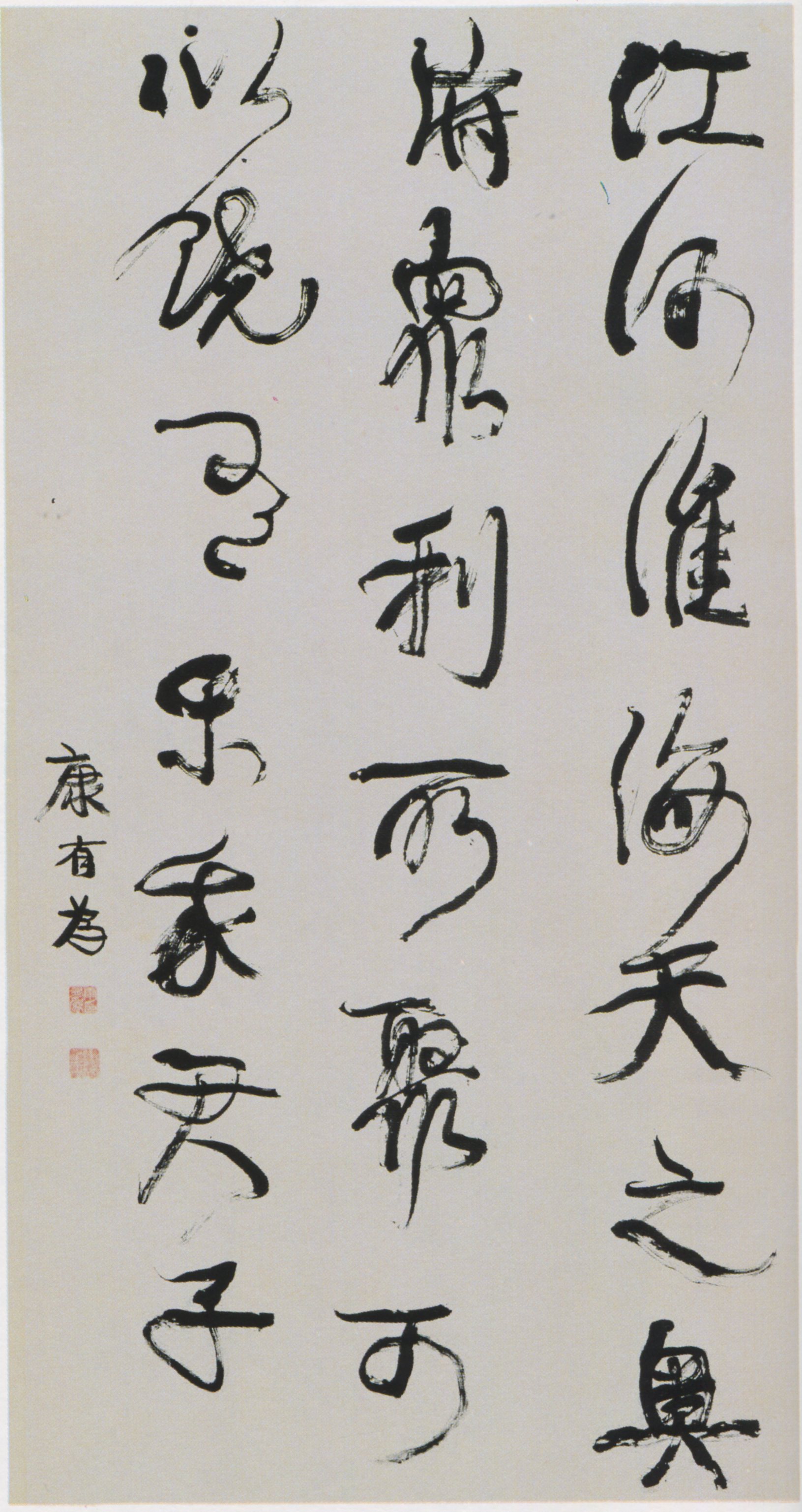 康有为《行书语摘轴》纸本行书 192×92cm 上海朵云轩藏 释文:江河淮海,天之奥府,众利所聚,可以饶有,乐我君子。 款署:康有为 钤印:康有为印(白文)等 《中国美术全集》-书法篆刻编-6-清代书法 (可嘉扫描)