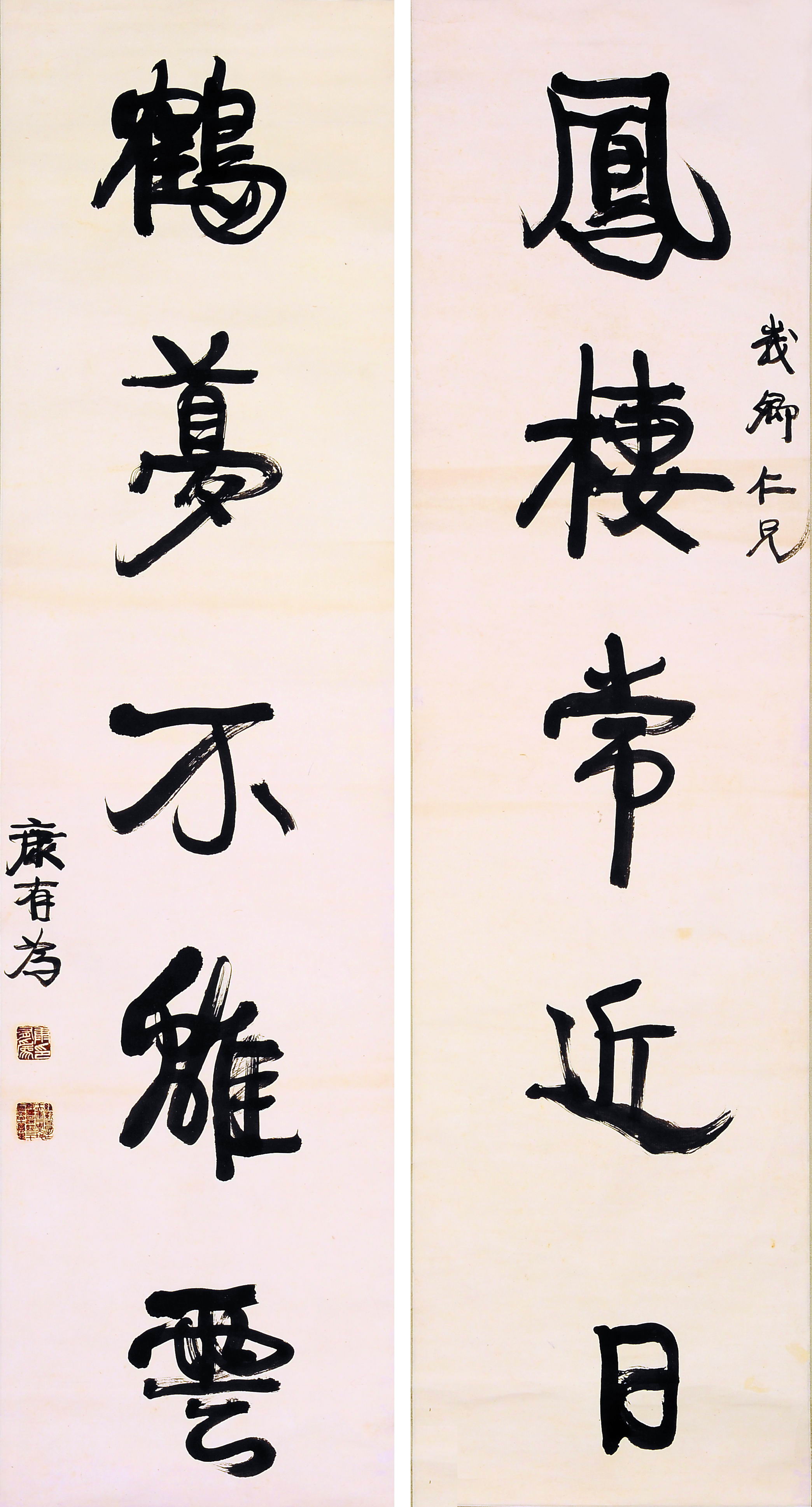 【释文】凤栖常近日,鹤梦不离云。峨卿仁兄。康有为。