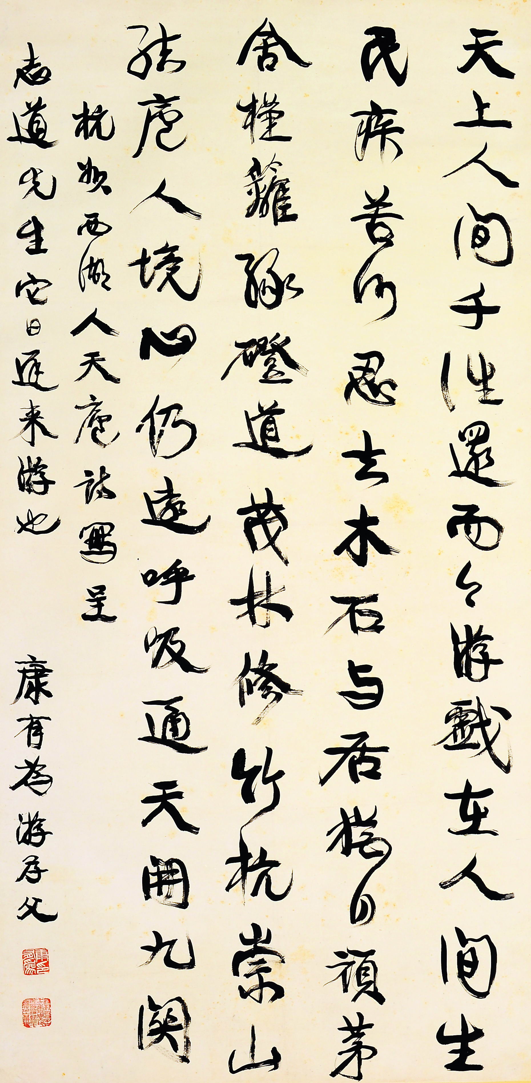康有为《行书天上人间七言轴》 纸本行书 130cm×65cm
