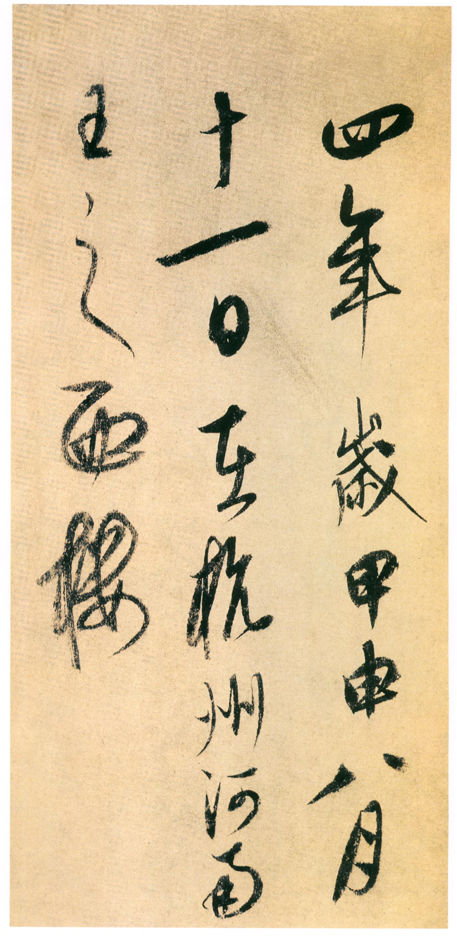 释文:元统三年乙亥岁,孟秋十七辰丁酉。初夜才闻蟋蟀声,秋蝉单啼亦良久。次夜蝉啼声更多,中宵酷热如之何?三更欲尽蝉声止,蛬声切切鸣相和。辄愿蓐收肃金气,为运凉飚示秋义。一扫沉阴秋月明,郁蒸既尽清风至。余作此诗今十年矣,适欲书,偶记而录之,子山识。时至正四年岁甲申八月十一日,在杭州河南王之西楼。