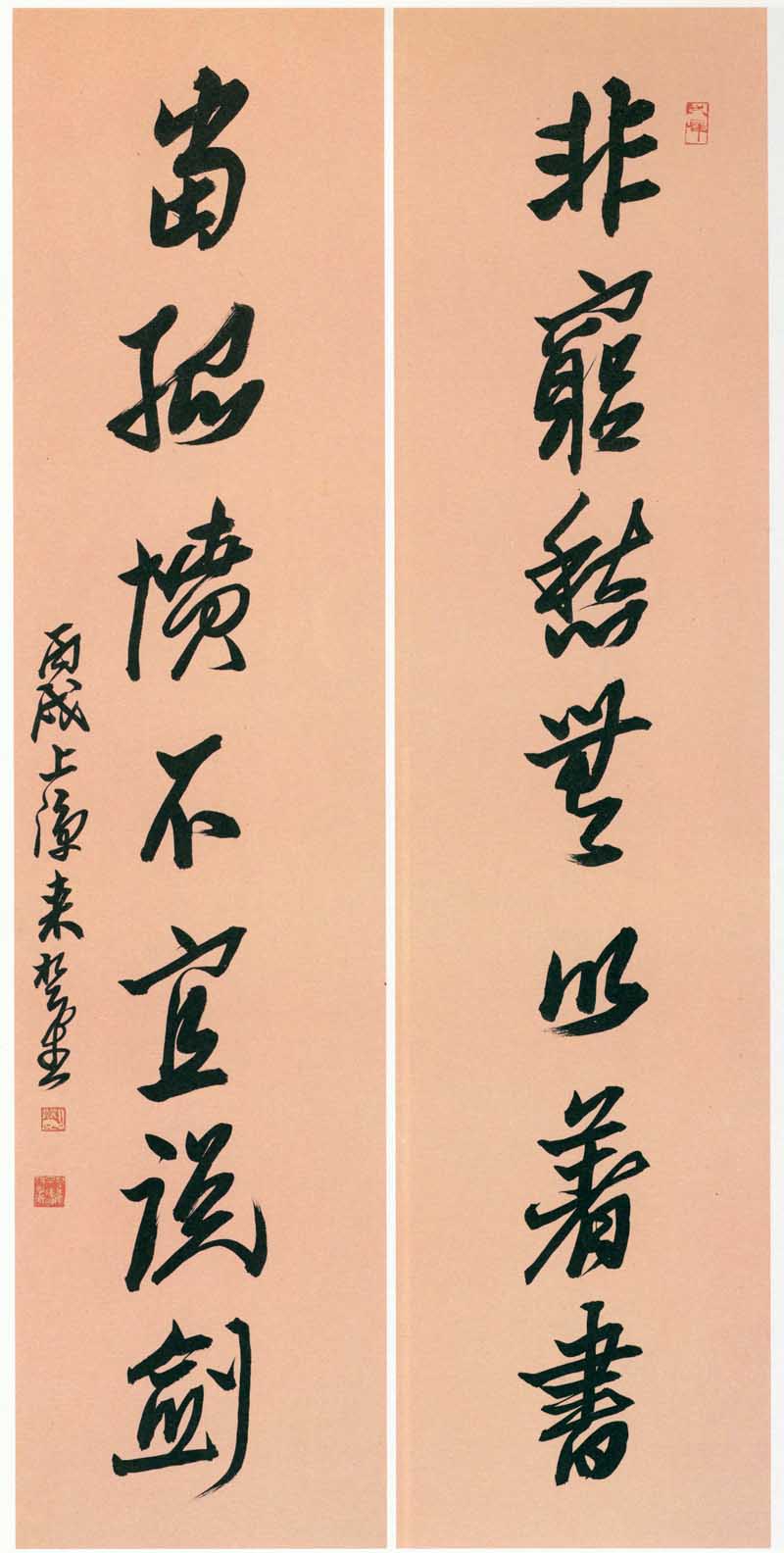 来楚生《行书非穷当孤七言联》纸本行书 134×32cm×2 1946年书 黄伟平藏
