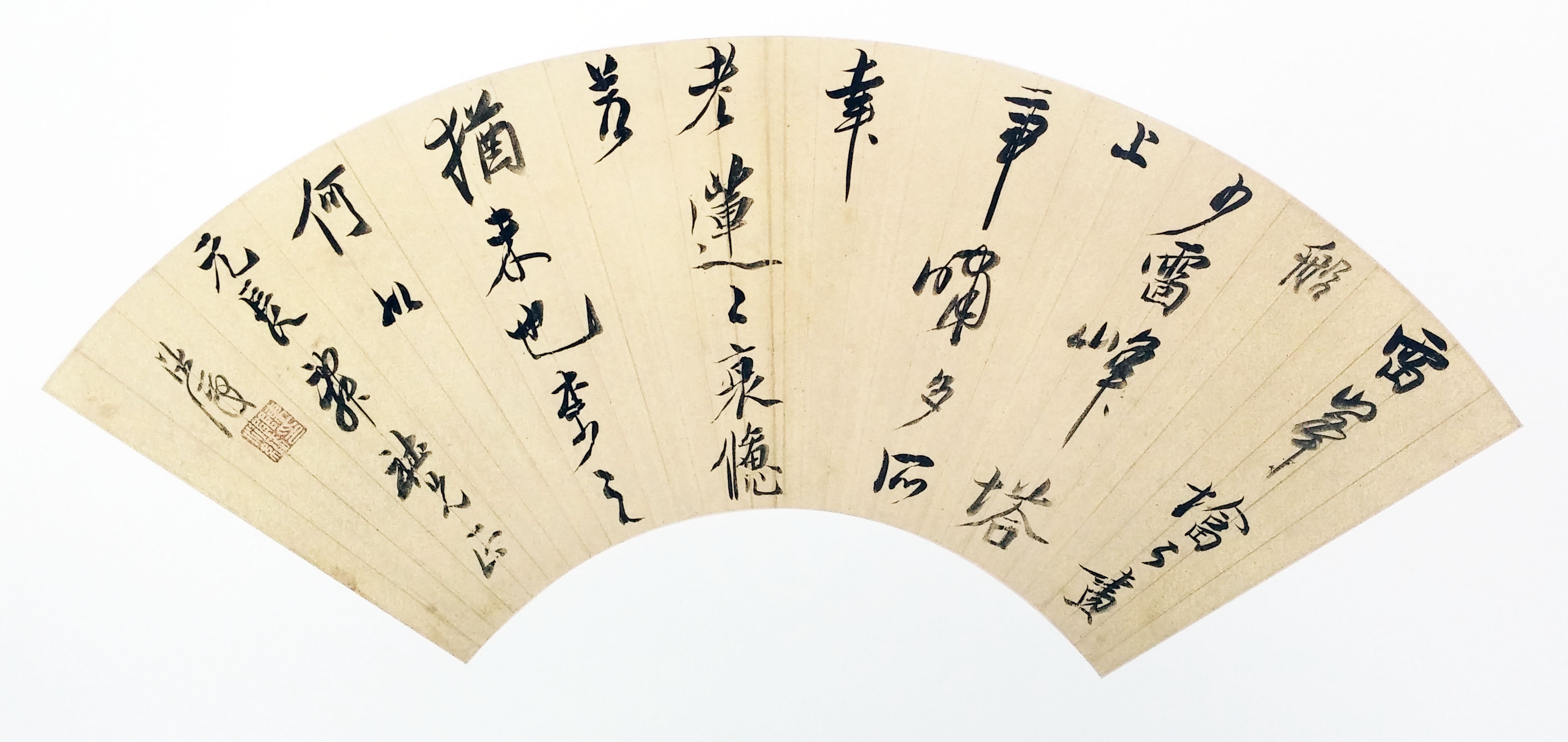 陈洪绶《行书雷锋塔下画船少七绝诗》扇面 金笺 约顺治二年(约1645)上海博物馆藏 释文:雷锋塔下画船少,雷锋塔上虎啸多。所幸老莲已衰惫,若犹未也奈之何。似元长辞社兄正。洪绶。 钤印:陈洪绶印(白文) 【资料来源】《陈洪绶全集》 (陈传席/天津人民美术出版社)
