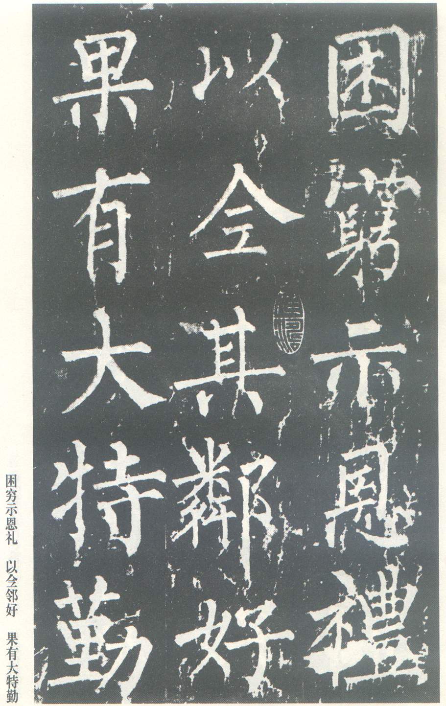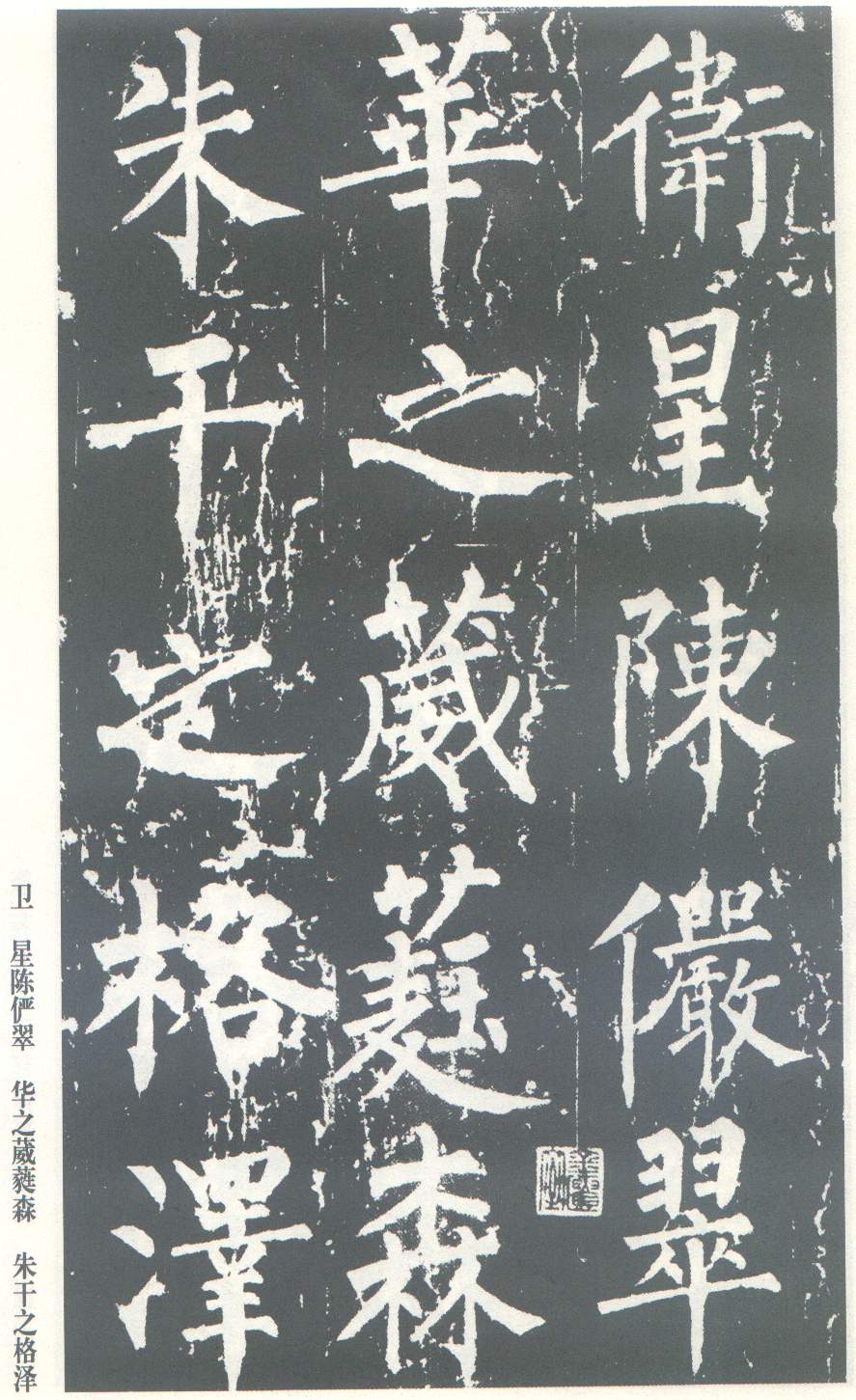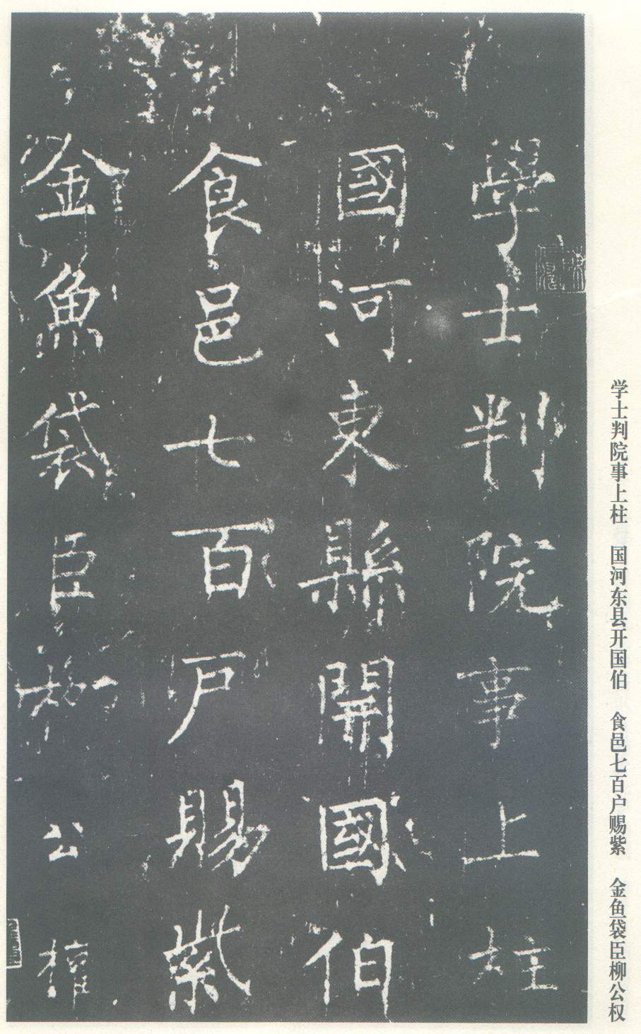 《神策军碑》是柳公权楷书的代表作之一。此碑较人们熟知的《玄秘塔》的书法风格更成熟,更具有特色。结体布局平稳匀整,保留了左紧右舒的传统结构。运笔方圆兼施,运用自如。笔画敦厚,沉着稳健,气势磅礴。典型地表现了柳体楷书浑厚中见开阔的艺术特点。正如岑宗旦《书评》云,柳书“如辕门列兵,森然环卫”。读此碑可以使人加深对“颜筋柳骨”这句话的艺术特征的理解。“神策军碑”原石立在封建王朝的禁内,一般人难以进去摹拓,因此拓本传世极少。上为北京图书馆藏唐拓本。拓本已装裱成上下二册,只存上册27开。下册早已失传。上册仅至“来朝上京嘉其诚”之“诚”字止,为碑文之前半,以下缺。后有南宋贾似道、元瀚林国史院、明晋王朱钢等藏印。清代经孙承泽、安岐等人递藏。此碑拓本本世纪中叶,曾一度流于香港,1965年在周恩来总理亲自指示下,以重金购回,现为北京图书馆收藏,成为显赫于世的瑰宝。有谭敬影印本,艺苑真赏社翻印本,又有文物出版社珂罗版影印本。