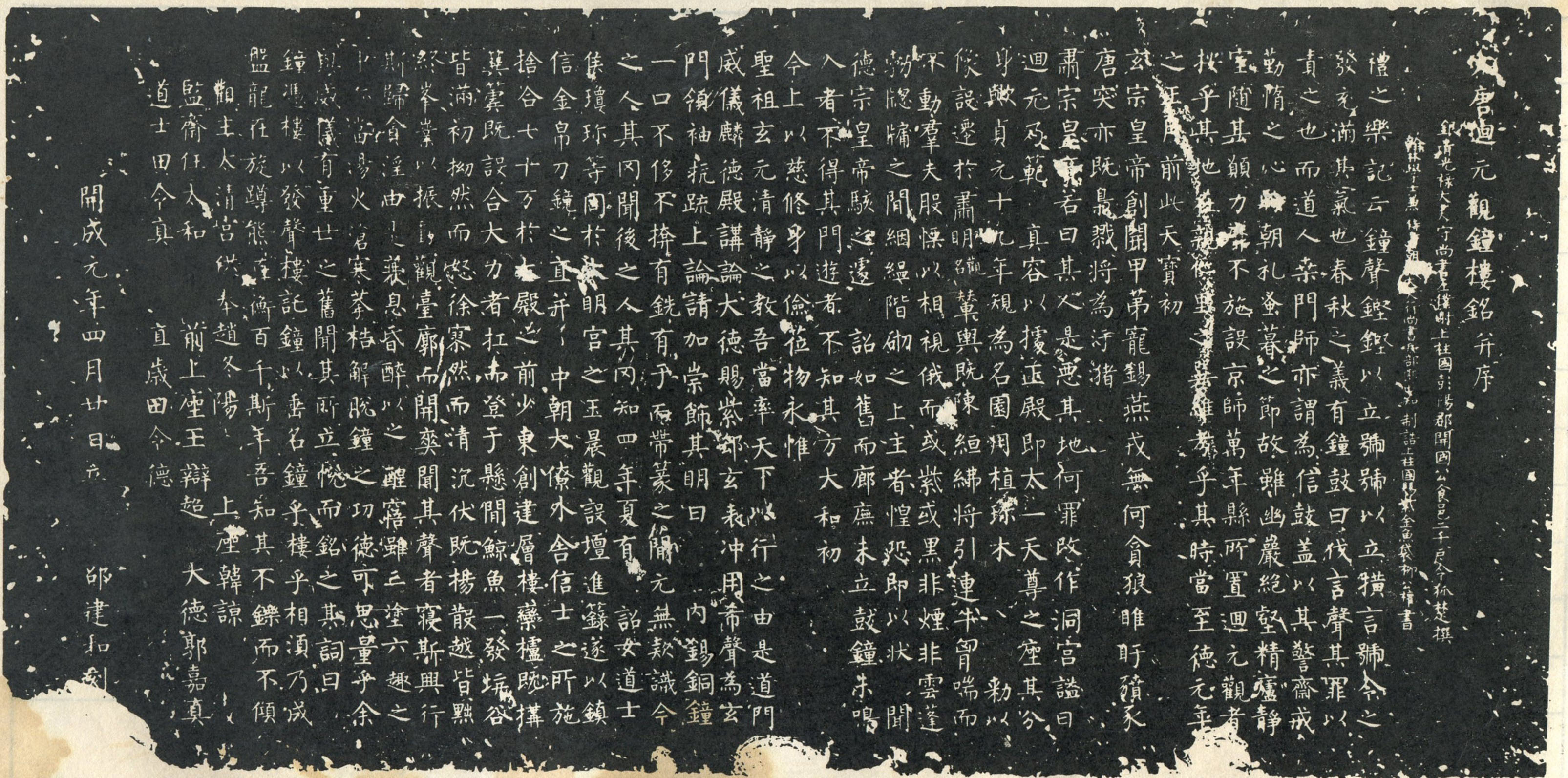 《大唐回元观钟楼铭》未见于历代金石著录。此碑在泯灭千年之后重见天日,堪称一大幸事。