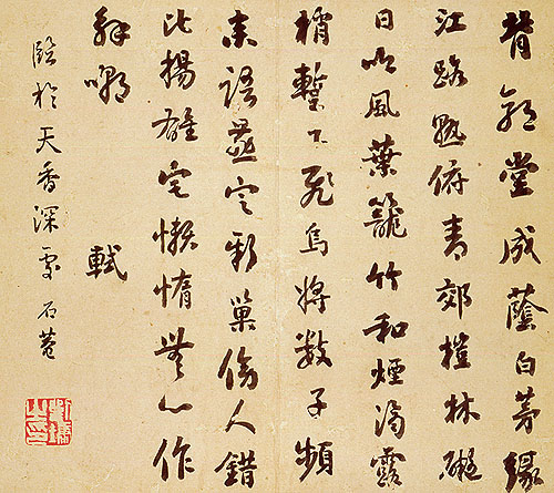 在诗文和书法的领域里,刘墉始终保持认真的态度,多方面学习,从未间断。 这件小品书作,照着宋代苏轼所写的《书杜甫桤木诗》,仔细临过。刘墉不但揣摩苏轼的笔法和结字习惯,也将其中浑厚的气度掌握到了。除了苏轼之外,刘墉对宋人的书法和诗文似乎特别用心,有时作起诗来,也彷彿宋诗的格局和意境。因此当时讨论诗学的人,曾经评论刘墉的诗文比书法好。但是欣赏刘墉书法的人,却又认为他的书法在诗文之上。其实刘墉并无心以诗书名家,他晚年任官体仁阁大学士,相当于宰相的地位,诗文书法只是政事之余的寄托。刘墉做事,不论大事小事都好好地认真去做,因此虽然不在意有多少收获,成绩却相当可观。