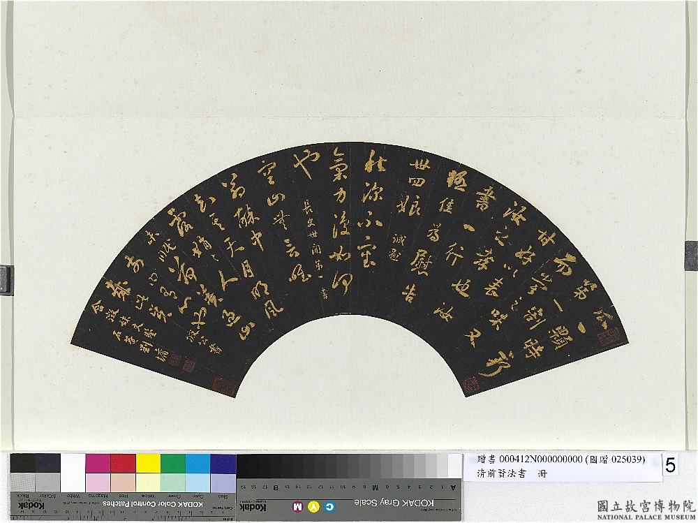 刘墉《临前贤法帖扇面》乌纸行草书 16×51.2cm 台北故宫博物院藏