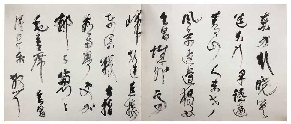 林散之《草书毛泽东清平乐会昌词横幅》 150×360cm 江苏省美术馆藏 释文:东方欲晓, 莫道君行早。 踏遍青山人未老, 风景这边独好。 会昌城外高峰, 颠连直接东溟。 战士指看南粤, 更加郁郁葱葱。 款署:毛主席会昌清平乐,散耳。