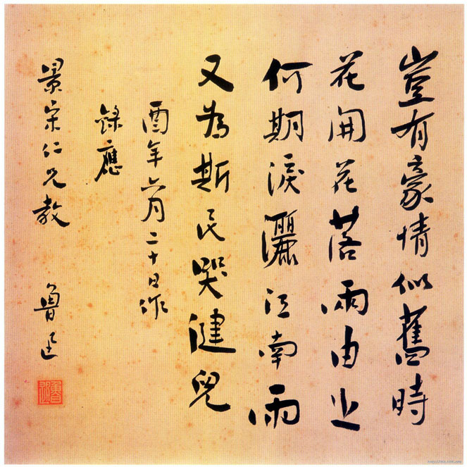 鲁迅《行书悼杨铨诗》24.2×27.3cm 1933年 北京鲁迅博物馆藏选自《魯迅手跡珍品展》(绍兴) 2008年4月8日-22日