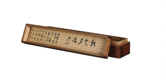 “安三”即日本人清水安三,木盒盒盖内的这段话应出自他本人手笔,而“七十七”当为他77岁时所书。“添四个字”即“朝花夕拾”,鲁迅回忆性散文集的书名。这段话再清楚不过地告诉我们,日式条幅上署名“鲁迅”的这16个毛笔字是他称之为“故人”的“周树人先生真笔”,这幅“真笔”是鲁迅书赠于他清水安三的。